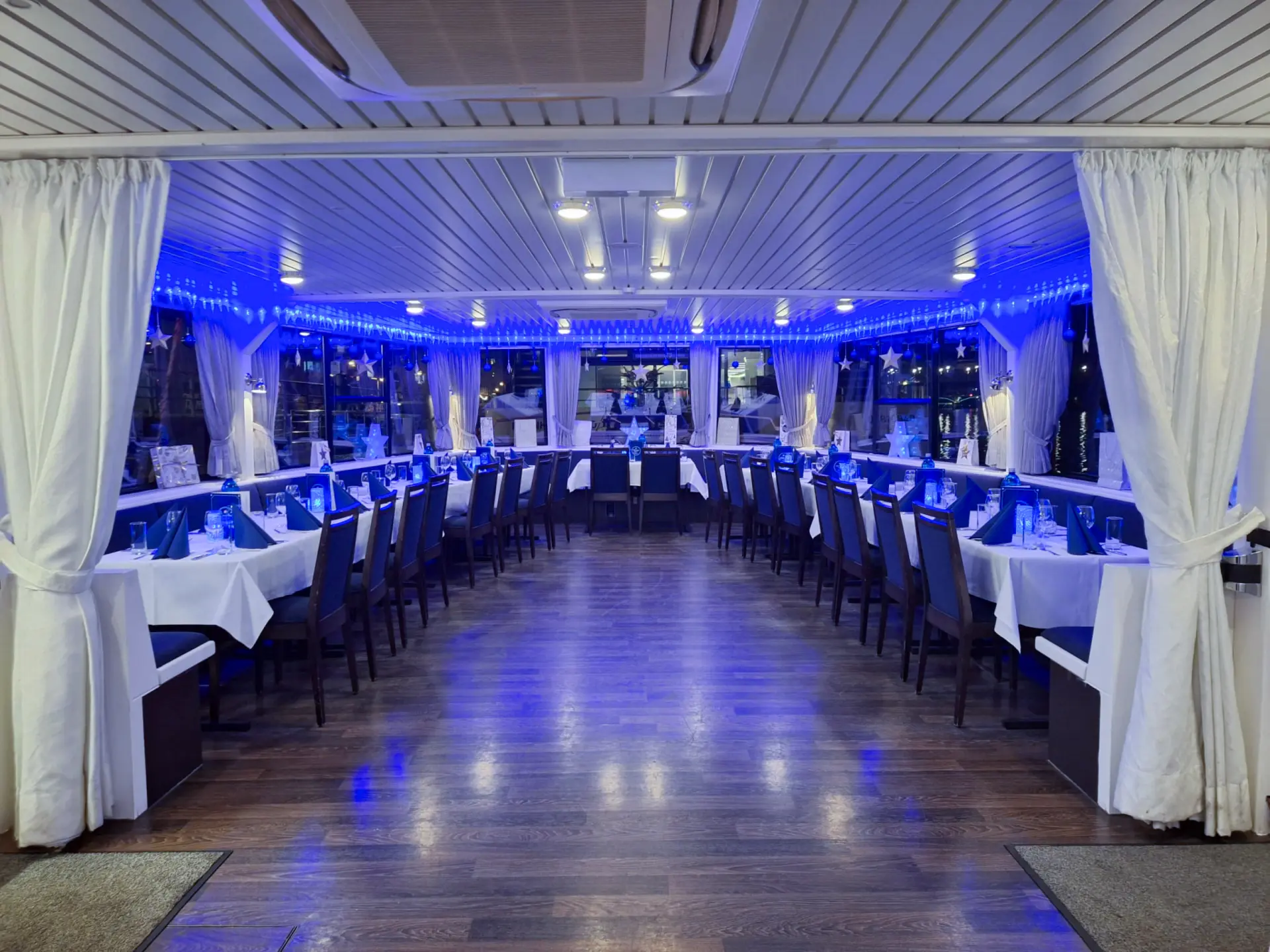 Die Wikinger ist wie eine gemütliche kleine Privatyacht - hier lässt es sich wunderbar plaudern und relaxen, aber genauso gut festlich dinieren oder tagen.