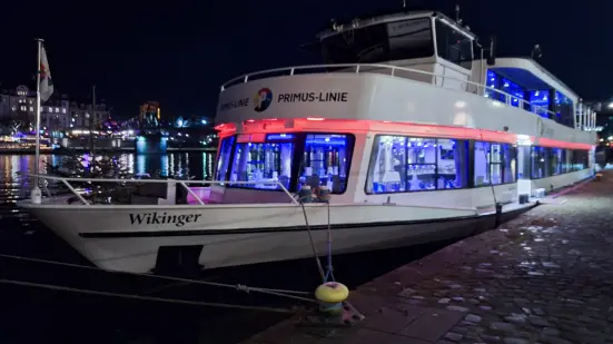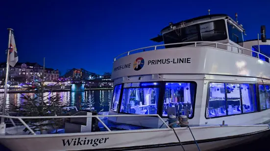 Die Wikinger ist das kleinste Schiff der Primus-Linie - und das schnellste. Und genau so sieht es auch aus. Die Wikinger bietet in jedem Fall genügend Platz für eine anständige Feier für bis zu 120 Personen. Die gutbürgerlich eingerichteten Innendecks lassen sich bei Bedarf aufteilen, das Mobiliar lässt sich nach Ihren Wünschen umarrangieren. Die großen Fenster und die warme Farbgebung des Interieurs verleihen den zwei Salons ein behagliches Ambiente. An heißen Tagen kann man auf den Außendecks den kühlenden Fahrtwind genießen, während die Landschaft beschaulich vorüberzieht.