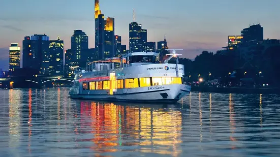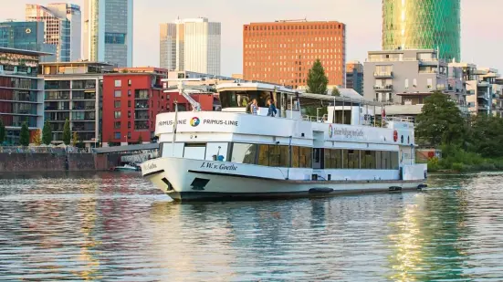 This is how to enjoy life – onboard the Johann Wolfgang von Goethe, a ship inspired by the great German poet. An elegant atmosphere dominates the inner deck with its wooden floor, leather chairs and glass wall citing Goethe’s poems. Tables and chairs can be arranged according to your wishes. Due to the ship’s panoramic windows the inner deck shines in a bright and friendly atmosphere. The ship’s outer deck is partly covered by a soft-top cover and is perfect for enjoying the sun and relaxation. The Johann Wolfgang von Goethe – ideal for conferences and exclusive festivities.