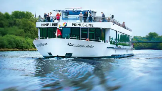 The Maria Sibylla Merian is the newest addition to the Primus fleet which lets boat trips on the river shine in a brighter light. Both the inside and the outer deck are very spacious and offer room for approximately 200 passengers each. The interior of the Merian is dominated by warm and friendly colours. The ship’s panoramic windows and the modern skylight window highlight the elegant atmosphere. After sunset the onboard LED lighting system accentuates the inner deck by creating an atmospheric light.
